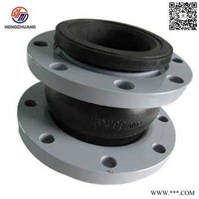 橡胶软接头又称可曲挠单球体橡胶接头,橡胶柔性接头,软接头,减振器、管道减震器、避震喉等,是一种高弹性、高气密性,耐介质性和耐气候性的管道接头。该产品利用了橡胶的弹性、高气密性、耐介质性、耐候性和耐辐射性等有点,采用高强度、冷热稳定性强的聚酯帘子布斜交与之复合后,经过高压、高温模具硫化而成。为防止该产品在长期使用中自然萎缩和减少老化破裂,采用网状钢丝进行多体保护。橡胶软接头是由内外层胶、帘布层和钢丝圈组成管状橡胶件,经硫化成型后再与金属法兰或平行接头松套组合而成。此产品可降低振动及噪声,并可对因温度变化引起的热胀冷缩起补偿作用,广泛应用于各种管道系统。与泵、阀门的连接、消防器材,震动较大的管道、冷热变化频繁的管道。主要用于原水和污水的提升和输送,火力发电厂的给水和冷却循环水,冶金行业,冷凝水,化工行业的化学物质的管道输送,石化行业的冷却,稀释及其它行业长短距离管线间的柔性连接。因为橡胶具有较高的耐磨性,还适用于一切行业的粒状和粉状及汽体的低温输送。