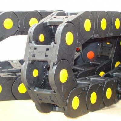 的每一节都能打开,便于安装和维修。运动时噪音低、耐磨,可高速运动。拖链已被广泛应用于数控机床、电子设备、石材机械、玻璃机械、门窗机械、注塑机、机械手、超重运输设备、自动化仓库等。