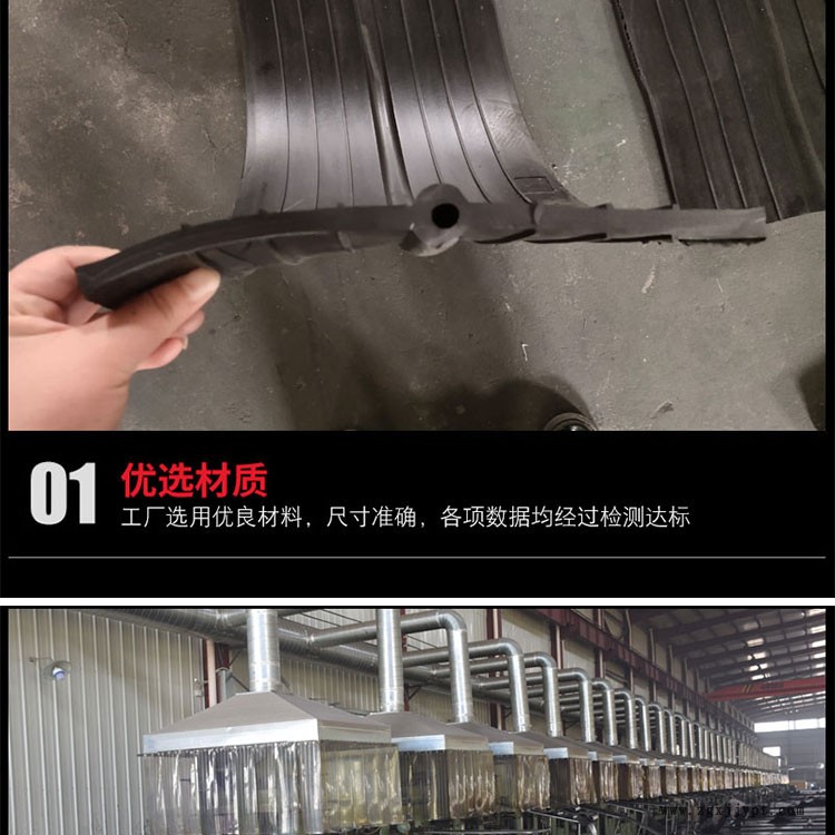 橡胶止水带该止水材料具有良好的弹性,耐磨性、耐老化性和抗撕裂性能,适应变形能力强、防水性能好,温度使用范围为-45℃-+60℃。当温度超过70℃,以及橡胶止水带受强烈的氧化作用或受油类等有机溶剂侵蚀时,均不得使用橡胶止水带。