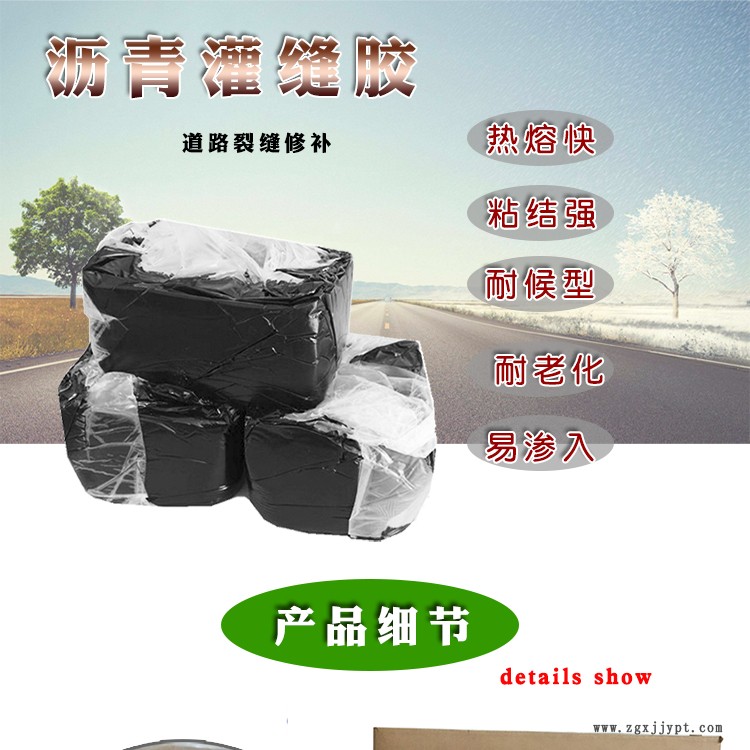 路面灌缝胶,施工技术性低,有无专业设备均可。本品为沥青添加改良剂,弥补了纯沥青在交通使用中的不足,耐高温,产品可用于国内各地区,普遍用于道路养护。屋顶防水也可使用,因其快干易施工的特性,深受施工方的青睐。