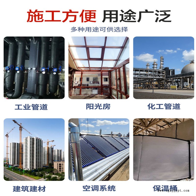 导热系数低:橡塑是高品质的保温节能材料,是隔冷、隔热防结露的克星,热传导系数低并且保持稳定,对任何热介质起隔绝效果。