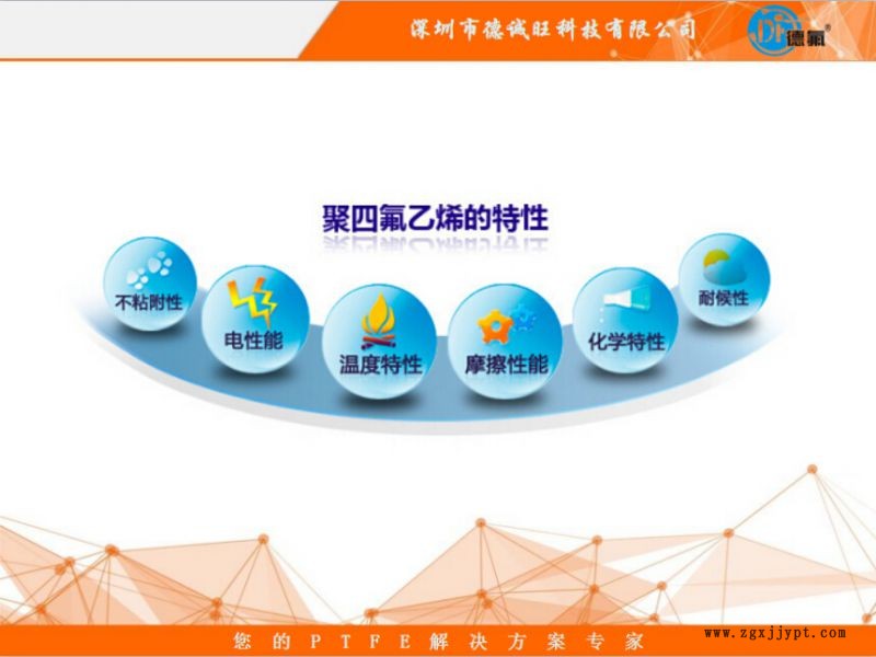 深圳市德诚旺科技有限公司,创办于2006年6月,是一家专业从事聚四氟乙烯制品(又名PTFE)的工业企业,产品广泛应用于五金、机械、电子、阀门、石油化工和航空等领域,产品技术指标达到德国、美国、日本等先进工业国家的技术质量标准,并坚持每年都更新的聚四氟乙烯的产品认证,如RoHS、 FDA等。