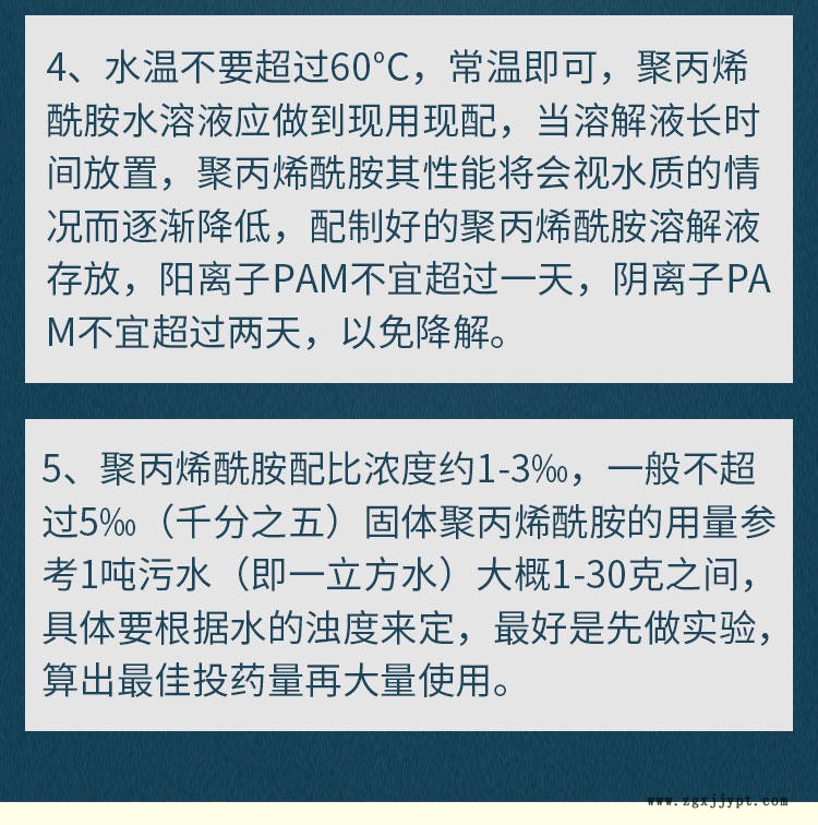 2)水处理中作助凝剂、絮凝剂、污泥脱水剂。