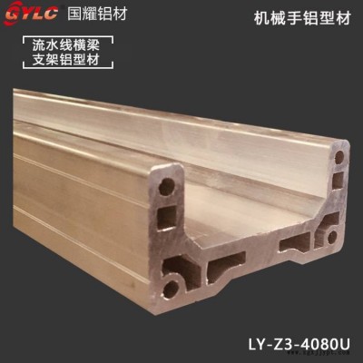 东莞国耀生产机械手整套铝型材厂家,手臂结构梁、引拨结构梁;为了方便安装,同时提供多种规格的支架、T型螺母等安装配件。国耀铝材提供机械框架和结构的整套设计方案,机械手铝材3D图纸;适用于注塑机行业自动上下料作业,