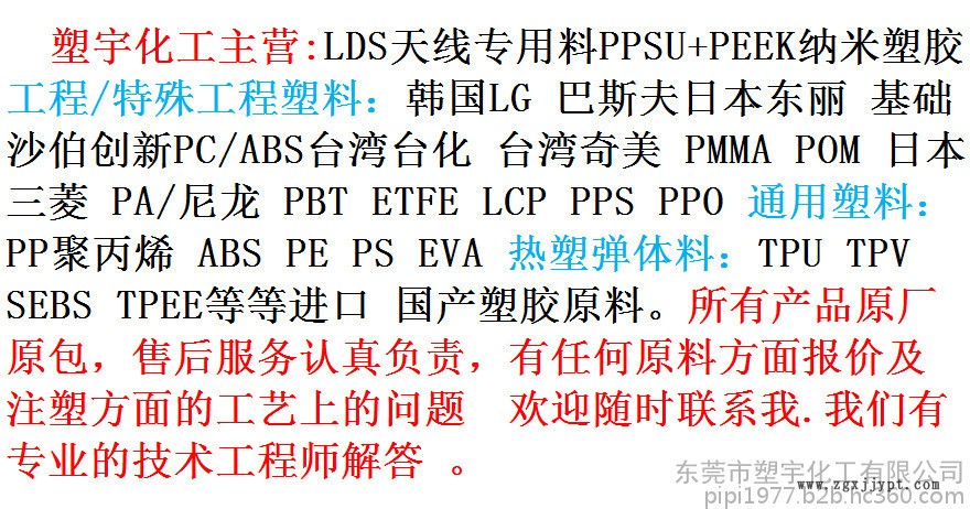 PBT 台湾长春 4130规格级别: 玻纤增强, 阻燃 PBT 台湾长春 4130外观颜色: 黑色本色 PBT 台湾长春 4130产品用途: 连接器、冷却风扇、插座、线圈轴、汽机车零件、开关、电视机零件、整流器。
