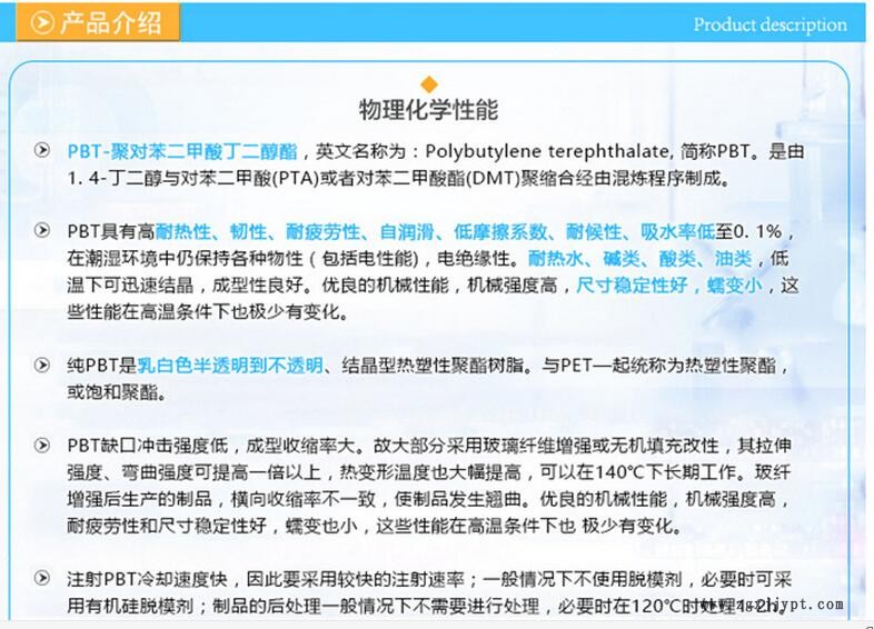 未改性PBT的成型收缩率较大,在1.7%~2.3%,模具要有一定的脱模斜度。