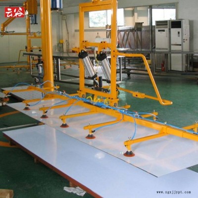 100公斤复合板吸盘助力机械手装备主要由三部分组成:平衡吊主机、抓取夹具(或机械手)及安装结构。机械手主机是实现物料(或工件)在空中无重力化浮动状态的主体装置。机械手则是实现工件抓取,并完成用户相应搬运和装配要求的装置。