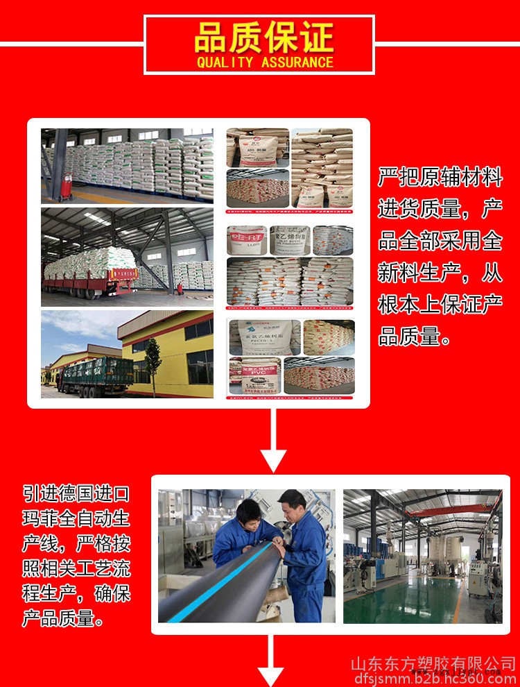 山东东方塑胶有限公司始建于1997年7月,位于禹城高新技术开发区,是生产塑胶管道的专业公司。公司占地面积1000000㎡ ,建筑面积600000㎡ 。现有员工200余人,其中中级以上职称占职工总数的百分之三十。公司集科研、生产、销售于一体,现有国内外先进的挤出机、注塑机100多台,模具2000余套,检测设备先进。企业总资产3个亿,年生产塑胶管道30000吨。