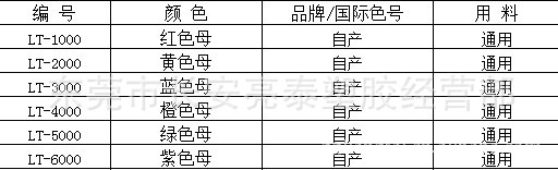 红色母:21元/KG黄色母:22元/公斤蓝色母:20元/公斤