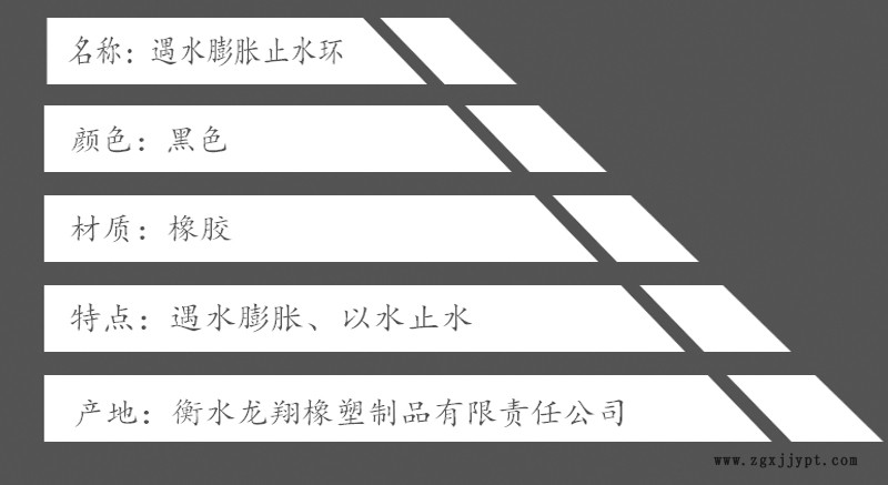 遇水膨胀型止水圈(片)是针对穿过结构物施工缝,裂缝的钢筋、管道等铁件更容易受到锈蚀。造成结构强度降低,直接威胁到建筑物,减少使用寿命,或者影响设备、设施不能正常使用等严重问题,专门研制的制式遇水膨胀止水新产品。