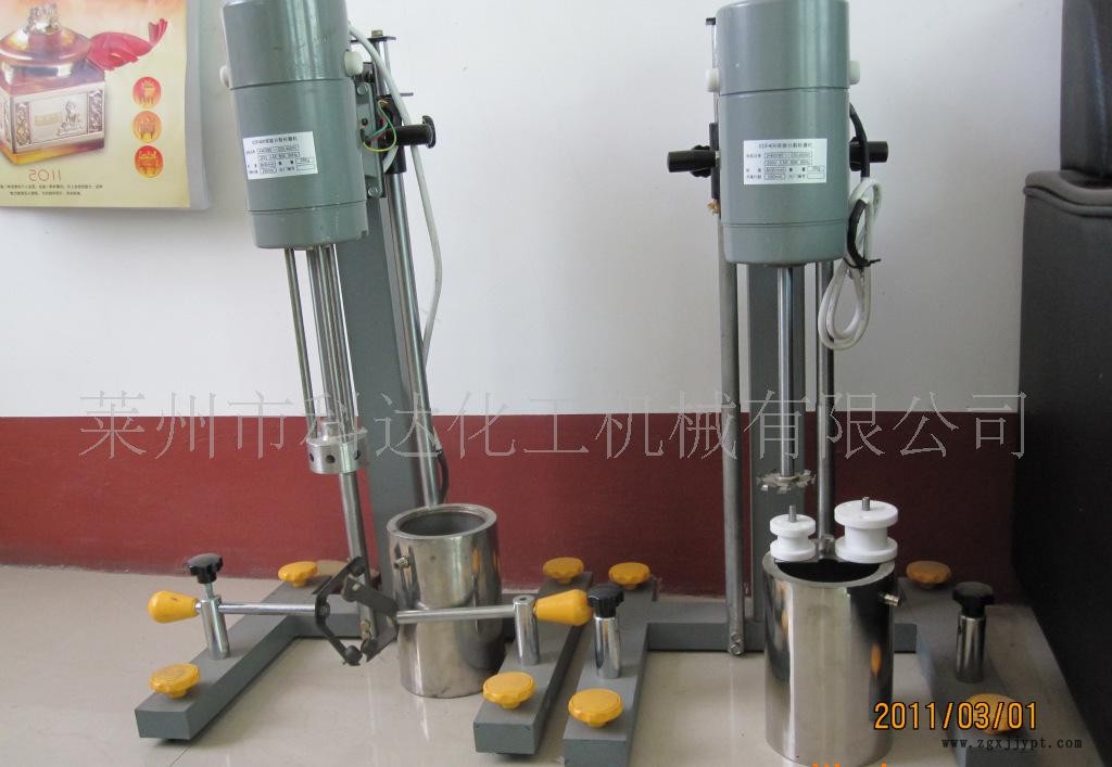 是采用国外新技术设计的新型产品,该产品可分散2L-50L,是实验室人员理想的实验设备。本设备采用电子恒力调速线路,数字直接显示转轴速,并配有多种分散叶轮。能适应实验室不同的试验需要,并可根据显示的转轴速度直接计算分散叶轮的线速度与物料粘度及化学反应速率之间的关系,为大规模投产提供正确的数据。