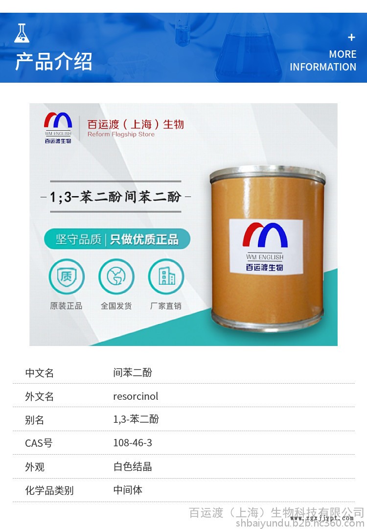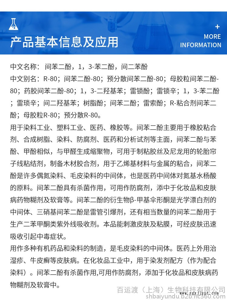 百运渡生物 供应 间苯二酚 染料 塑料 橡胶 橡胶专用