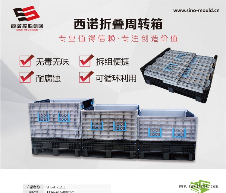 西诺折叠周转箱是可折叠周转箱的革新制造者。我们拥有5种不同的折叠周转箱型号,有超过120种不同的尺寸和设计。