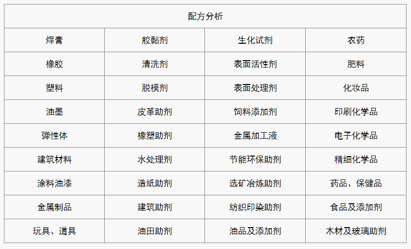 分析作用:模仿生产产品、测试分析、产品改进、还原配方、质量问题诊断、精密仪器配方测试分析及制作方法指导。