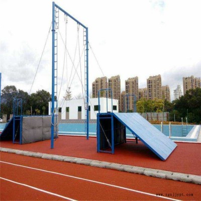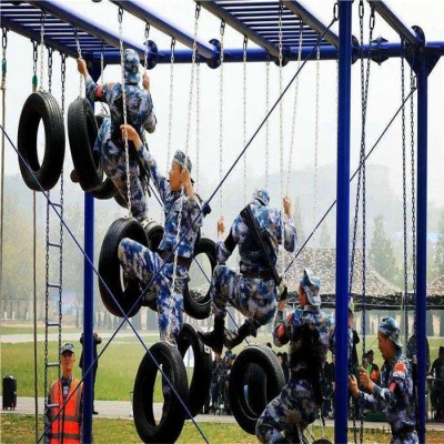 所述障碍物为依次排列的软桥1、螺旋梯2、高低横木3、绳网4、轮胎攀台5、摇摆平台6、晃动横梯7、跨网8、阻绝墙9、模拟沙滩10。渡海登岛400米障碍场针对渡海登陆作战的实战环境,以提高单兵海上作战适应能力为重点,遵循体能训练规律,按照系统组合的原理,不同程度地模拟装载、航渡、换乘、抢滩上陆的特殊状态 13051602209肖娜010-81535399微信qq9195656426