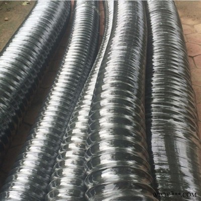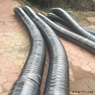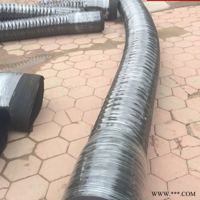 伸缩胶管由耐磨、耐高温的合成橡胶内胶层、帘子线缠绕增强层、螺旋钢丝骨架层和外胶层组成